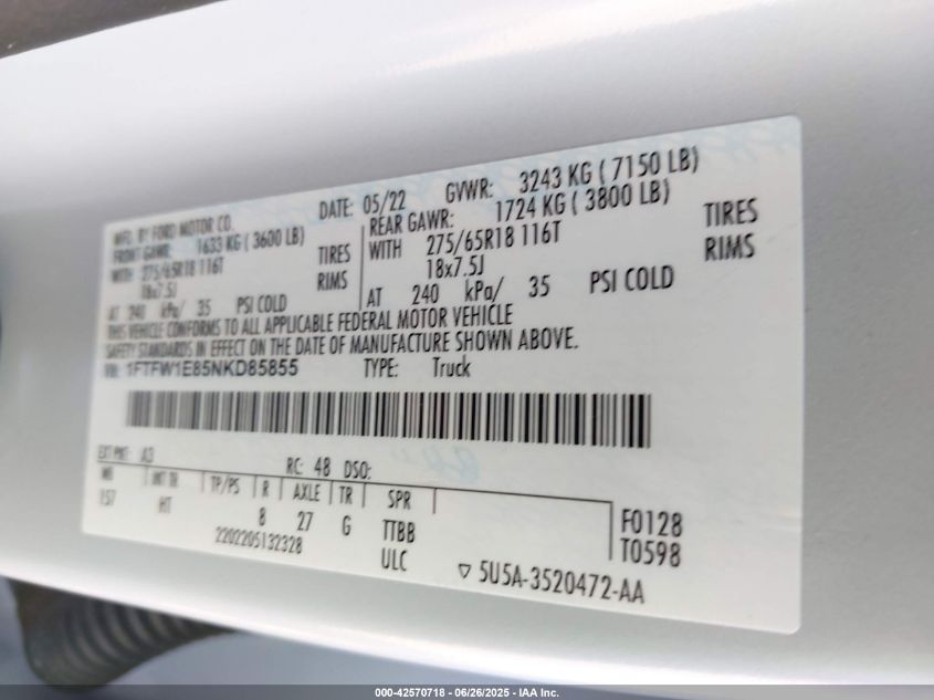 2022 FORD F-150 | 1FTFW1E85NKD85855