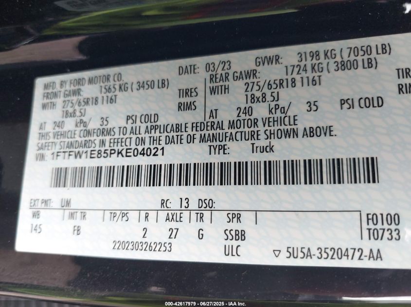 2023 FORD F-150 | 1FTFW1E85PKE04021