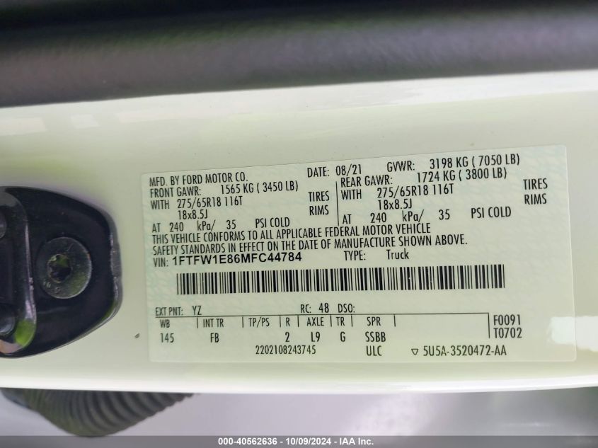 2021 FORD F-150 | 1FTFW1E86MFC44784