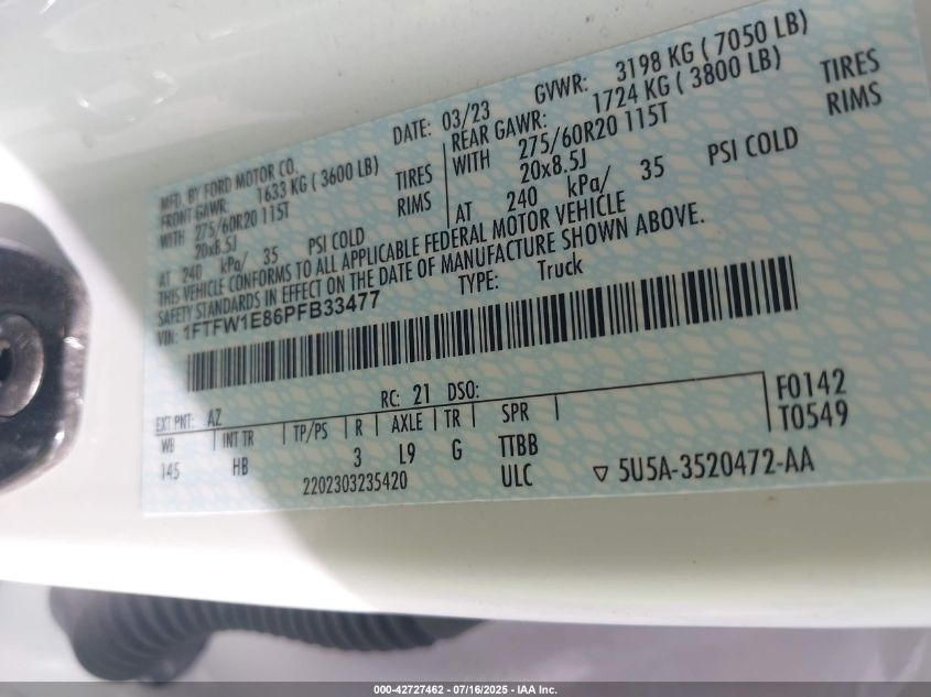 2023 FORD F-150 | 1FTFW1E86PFB33477