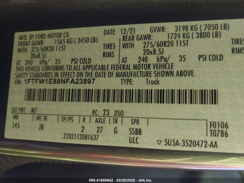 2022 FORD F-150 | 1FTFW1E88NFA23897
