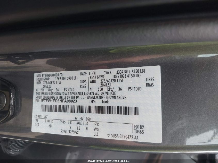 2022 FORD F-150 | 1FTFW1ED8NFA08023