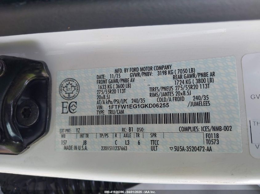 2016 FORD F-150 | 1FTFW1EG1GKD06255