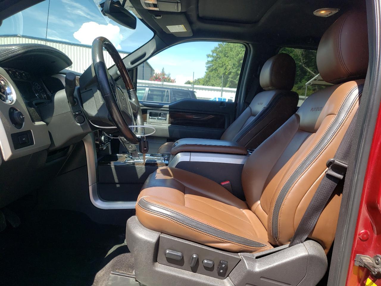 Inside, base trims came with rugged vinyl or durable cloth in Medium Earth Gray or Steel, while higher trims — including Lariat, King Ranch, and Platinum — featured heated/cooled leather seating in colors like Adobe, Black, or Chaparral. Woodgrain or brushed aluminum inserts adorned the dash and doors, with soft-touch surfaces and ambient lighting available on upper trims. The Raptor offered its own aesthetic, including SVT embroidery, contrast stitching, and rubberized controls for improved off-road usability.