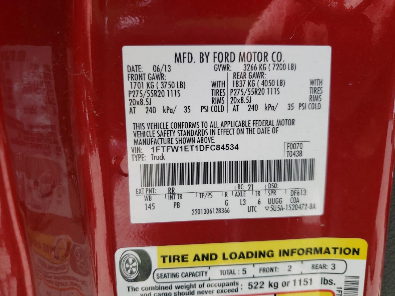 2013 FORD F-150 | 1FTFW1ET1DFC84534
