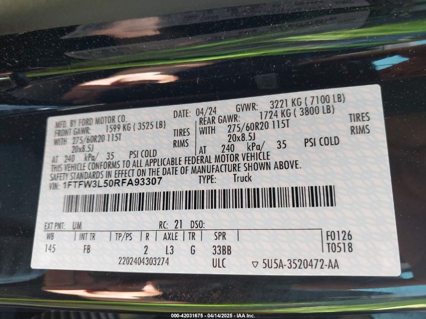 2024 FORD F-150 | 1FTFW3L50RFA93307