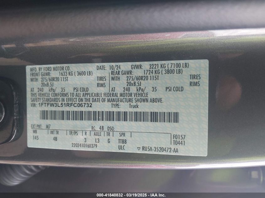 2024 FORD F-150 | 1FTFW3L51RFC06732