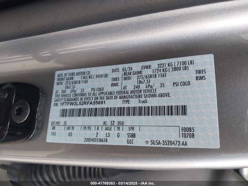 2024 FORD F-150 | 1FTFW3L52RFA55691