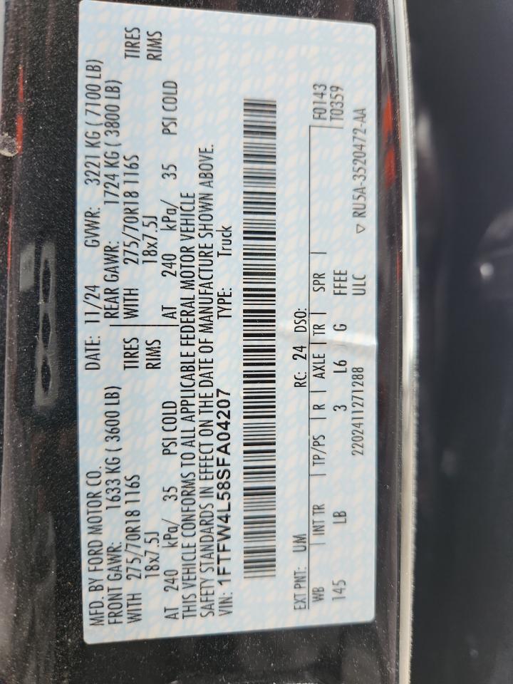 2025 FORD F-150 | 1FTFW4L58SFA04207