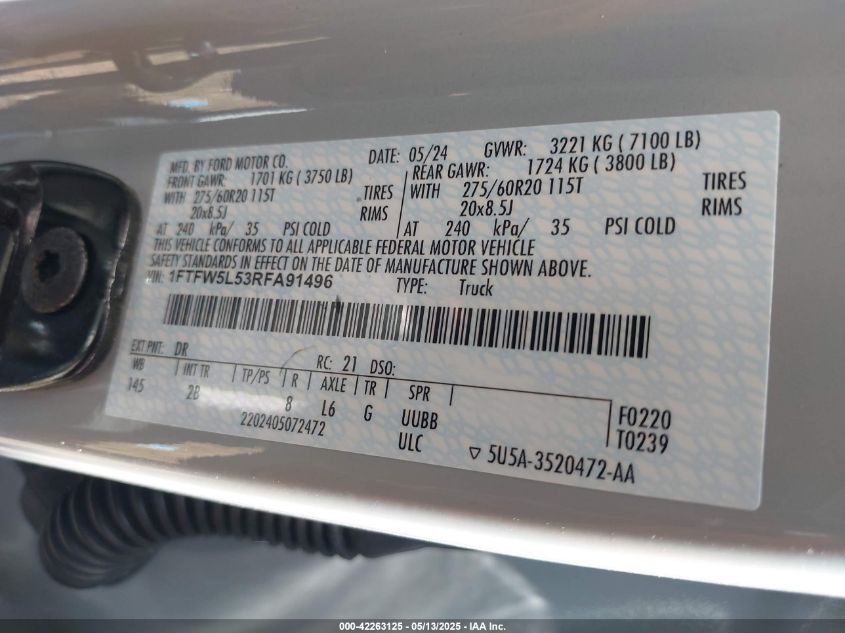 2024 FORD F-150 | 1FTFW5L53RFA91496