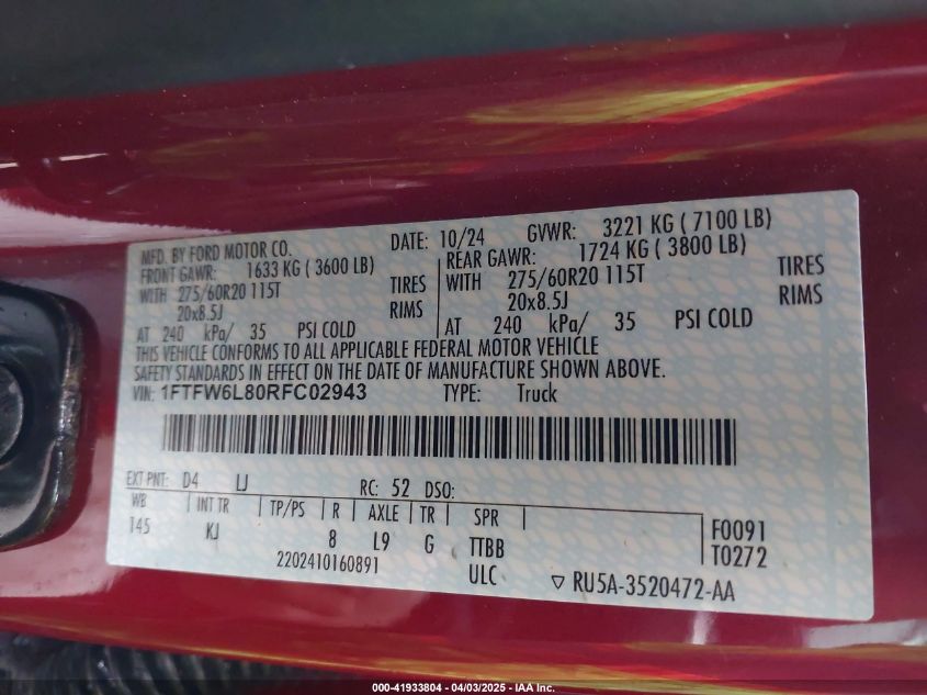 2024 FORD F-150 | 1FTFW6L80RFC02943