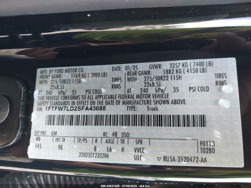 2025 FORD F-150 | 1FTFW7LD2SFA43688