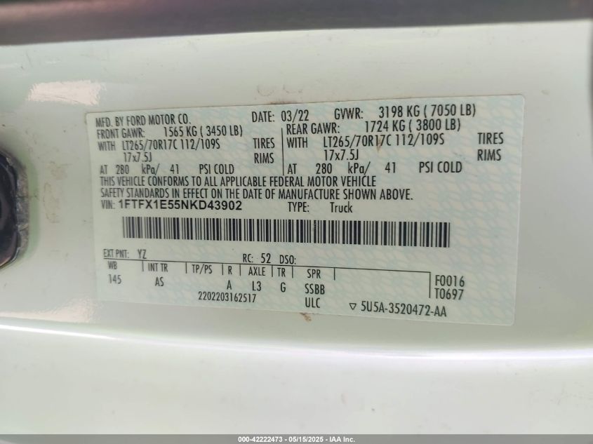 2022 FORD F-150 | 1FTFX1E55NKD43902