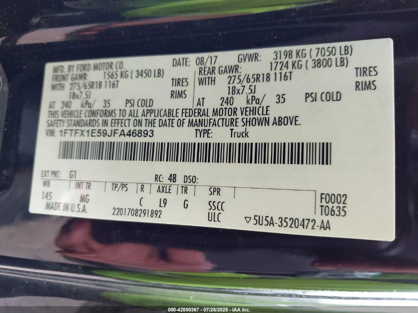 2018 FORD F-150 | 1FTFX1E59JFA46893