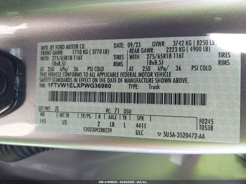 2023 FORD F-150 | 1FTVW1ELXPWG36980