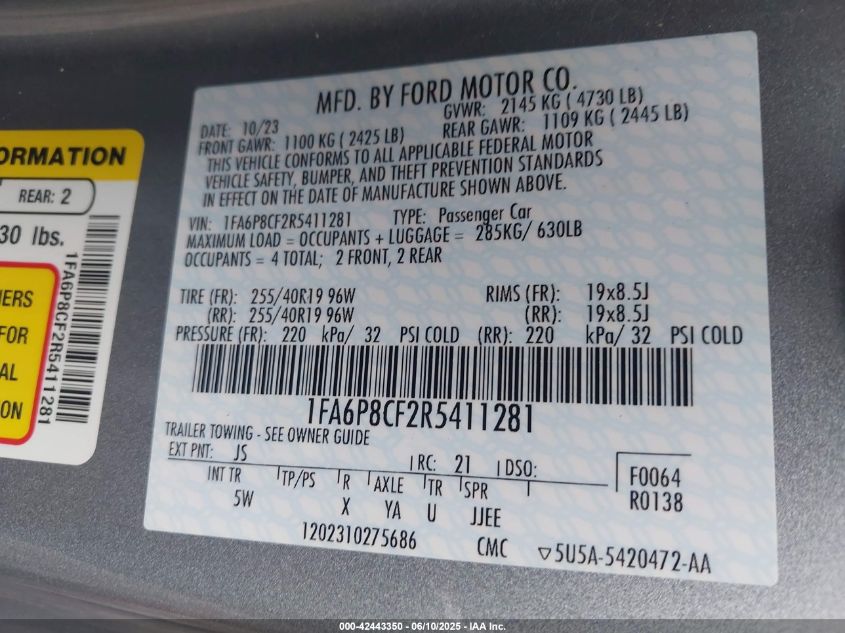 2024 FORD MUSTANG | 1FA6P8CF2R5411281