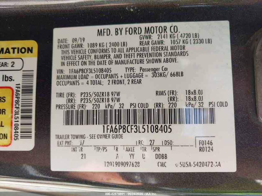 2020 FORD MUSTANG | 1FA6P8CF3L5108405