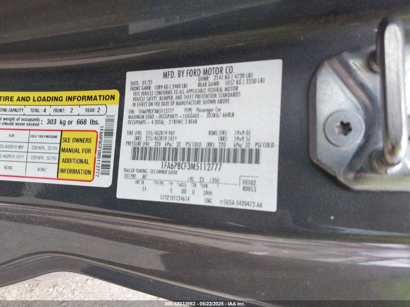 2021 FORD MUSTANG | 1FA6P8CF3M5112777