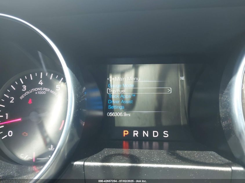 Inside, the Mustang transitioned from basic cloth seats in EcoBoost models to leather-appointed, heated, and ventilated performance seats in GT, Mach 1, and Shelby variants. Special Recaro sport bucket seats were optional on higher-performance models, providing enhanced lateral support for spirited driving. Interior trims varied from simple brushed aluminum in base trims to carbon fiber, suede, and exclusive GT350/GT500 signature plaques in performance variants. The cockpit emphasized driver-centric ergonomics, featuring a 12-inch fully digital instrument cluster on higher trims, SYNC 3 infotainment systems with Apple CarPlay and Android Auto, and optional Bang & Olufsen premium audio systems for an immersive experience.