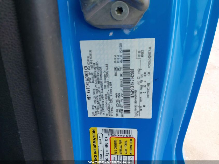 2022 FORD MUSTANG | 1FA6P8CF4N5142081