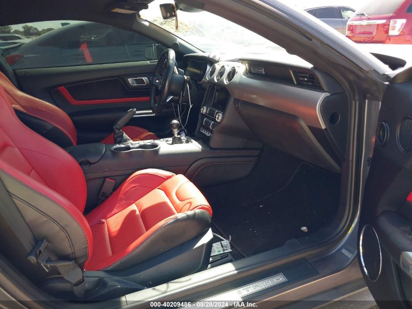 Inside, the Mustang transitioned from basic cloth seats in EcoBoost models to leather-appointed, heated, and ventilated performance seats in GT, Mach 1, and Shelby variants. Special Recaro sport bucket seats were optional on higher-performance models, providing enhanced lateral support for spirited driving. Interior trims varied from simple brushed aluminum in base trims to carbon fiber, suede, and exclusive GT350/GT500 signature plaques in performance variants. The cockpit emphasized driver-centric ergonomics, featuring a 12-inch fully digital instrument cluster on higher trims, SYNC 3 infotainment systems with Apple CarPlay and Android Auto, and optional Bang & Olufsen premium audio systems for an immersive experience.