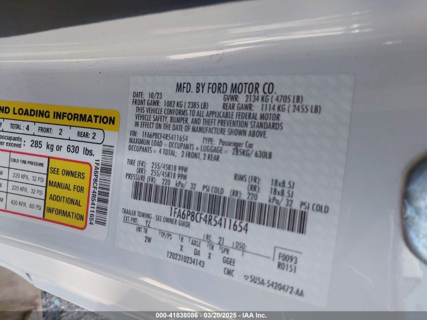 2024 FORD MUSTANG | 1FA6P8CF4R5411654