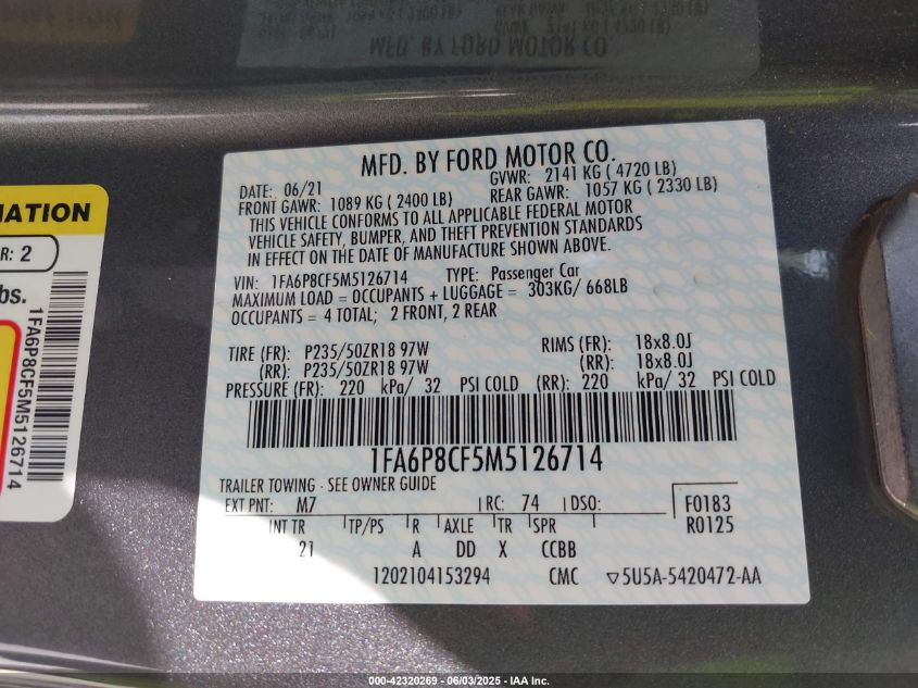 2021 FORD MUSTANG | 1FA6P8CF5M5126714