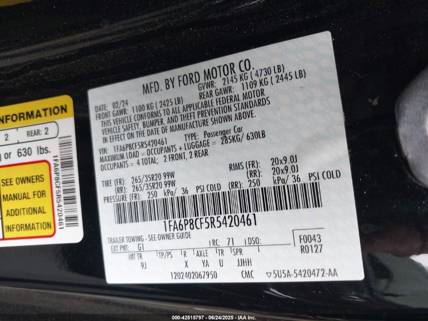 2024 FORD MUSTANG | 1FA6P8CF5R5420461