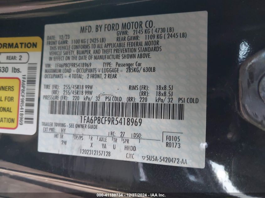 2024 FORD MUSTANG | 1FA6P8CF9R5418969