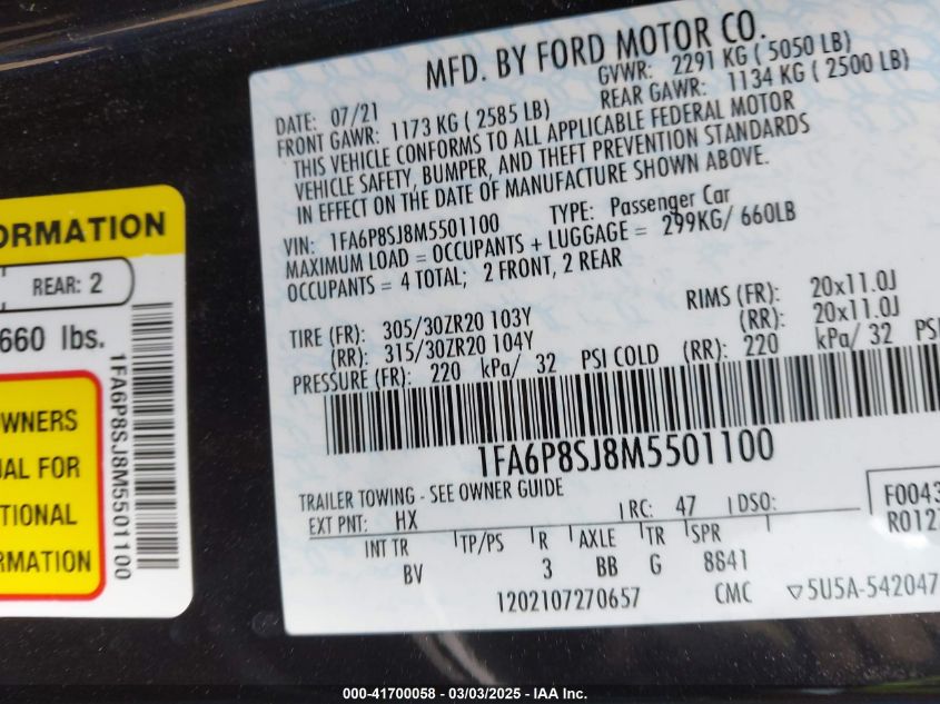 2021 FORD MUSTANG | 1FA6P8SJ8M5501100