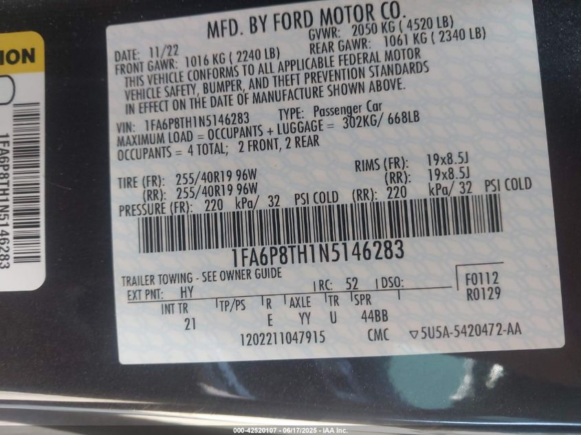 2022 FORD MUSTANG | 1FA6P8TH1N5146283