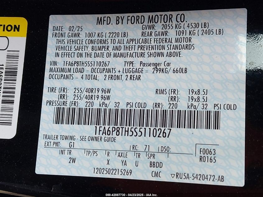 2025 FORD MUSTANG | 1FA6P8TH5S5110267