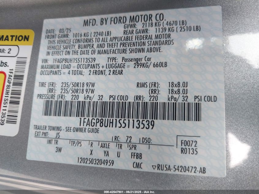 2025 FORD MUSTANG | 1FAGP8UH1S5113539