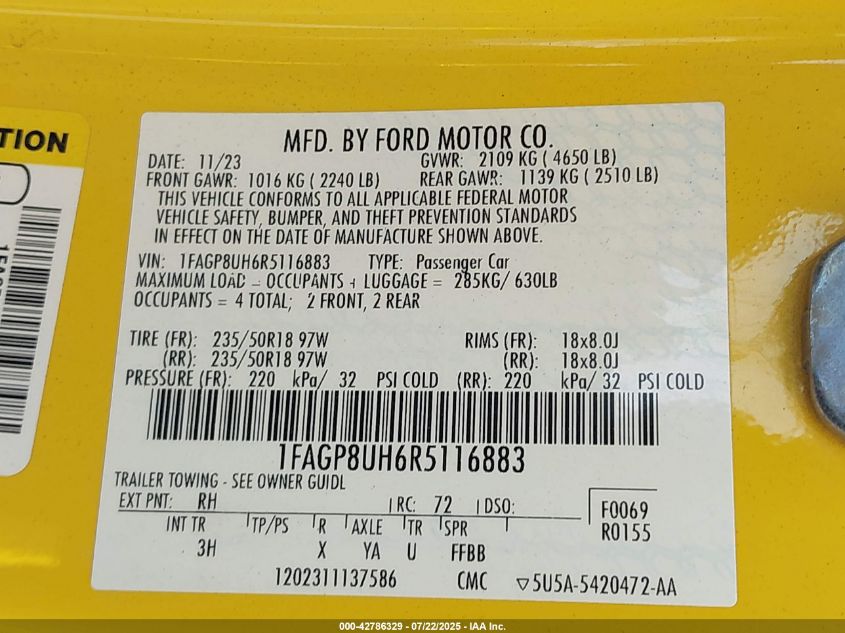 2024 FORD MUSTANG | 1FAGP8UH6R5116883
