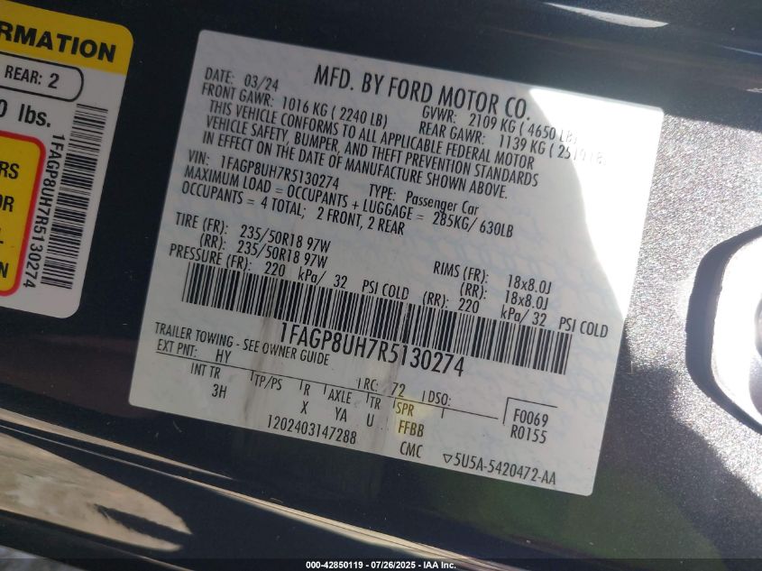 2024 FORD MUSTANG | 1FAGP8UH7R5130274