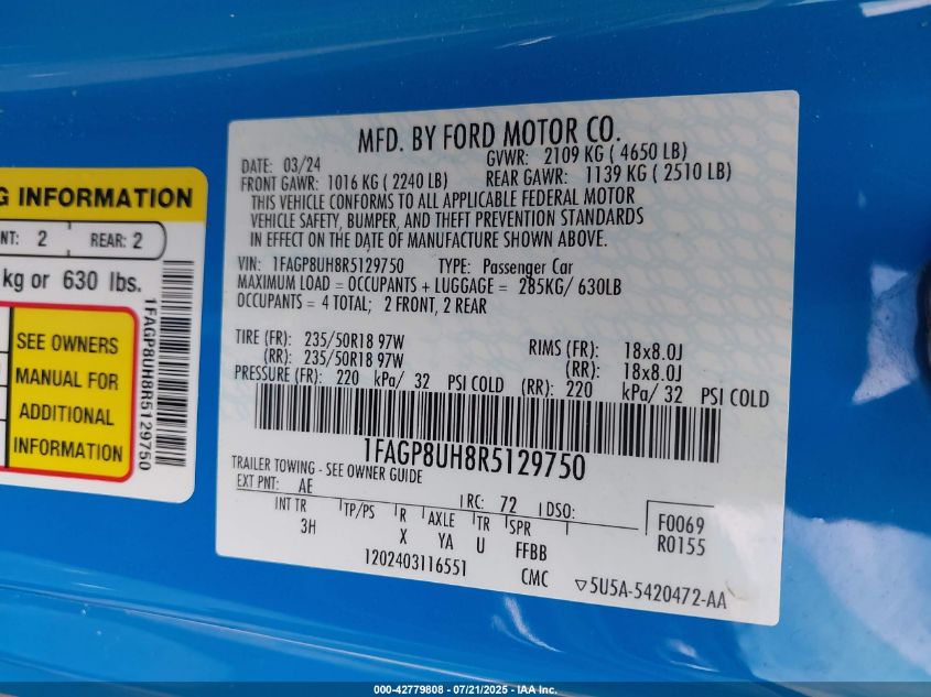 2024 FORD MUSTANG | 1FAGP8UH8R5129750