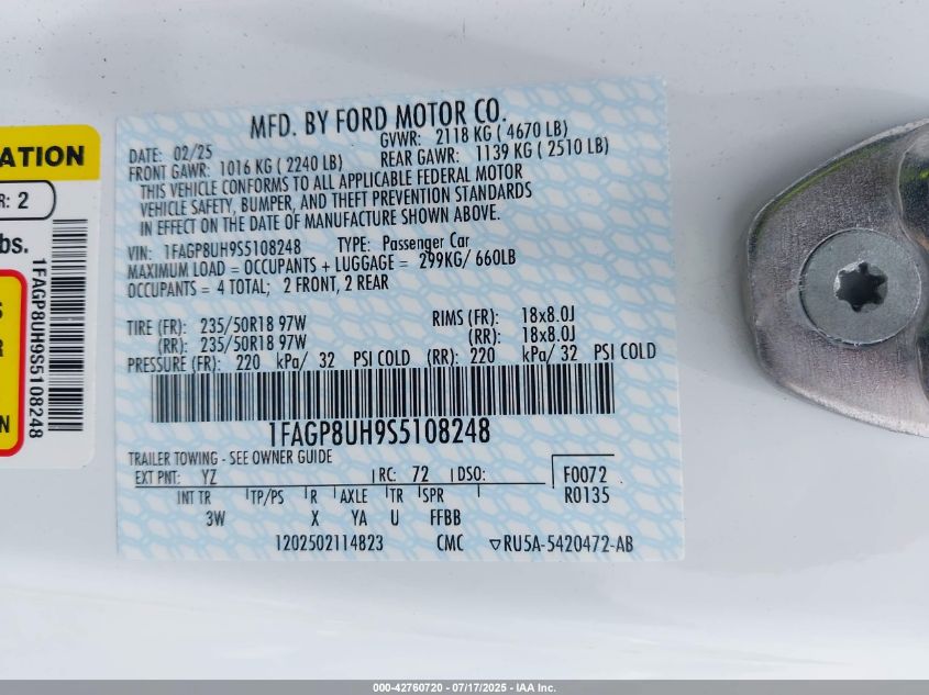 2025 FORD MUSTANG | 1FAGP8UH9S5108248