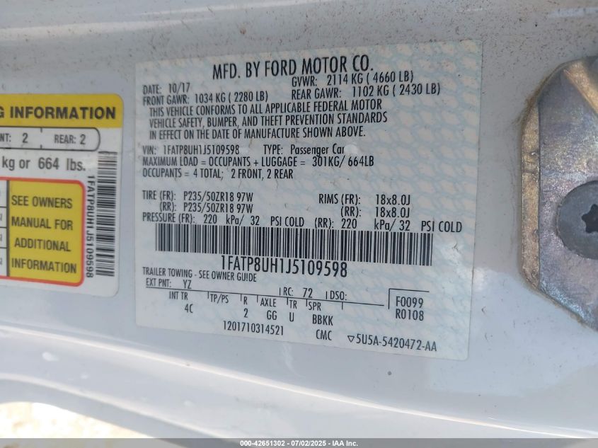 2018 FORD MUSTANG | 1FATP8UH1J5109598