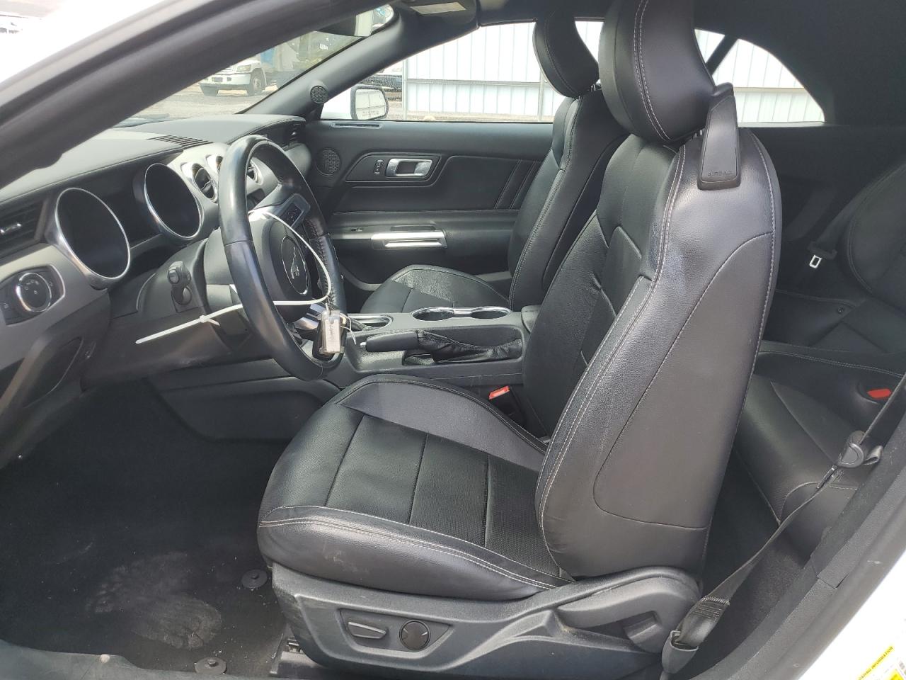 Inside, the Mustang transitioned from basic cloth seats in EcoBoost models to leather-appointed, heated, and ventilated performance seats in GT, Mach 1, and Shelby variants. Special Recaro sport bucket seats were optional on higher-performance models, providing enhanced lateral support for spirited driving. Interior trims varied from simple brushed aluminum in base trims to carbon fiber, suede, and exclusive GT350/GT500 signature plaques in performance variants. The cockpit emphasized driver-centric ergonomics, featuring a 12-inch fully digital instrument cluster on higher trims, SYNC 3 infotainment systems with Apple CarPlay and Android Auto, and optional Bang & Olufsen premium audio systems for an immersive experience.