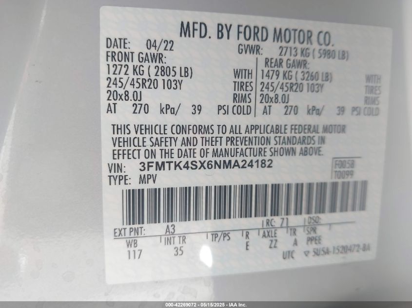 2022 FORD MUSTANG MACH-E | 3FMTK4SX6NMA24182