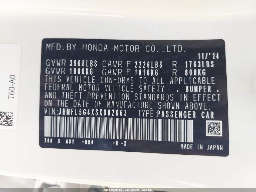 2025 HONDA CIVIC TYPE R | JHMFL5G4XSX002063