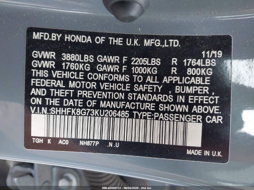 2019 HONDA CIVIC TYPE R | SHHFK8G73KU206485