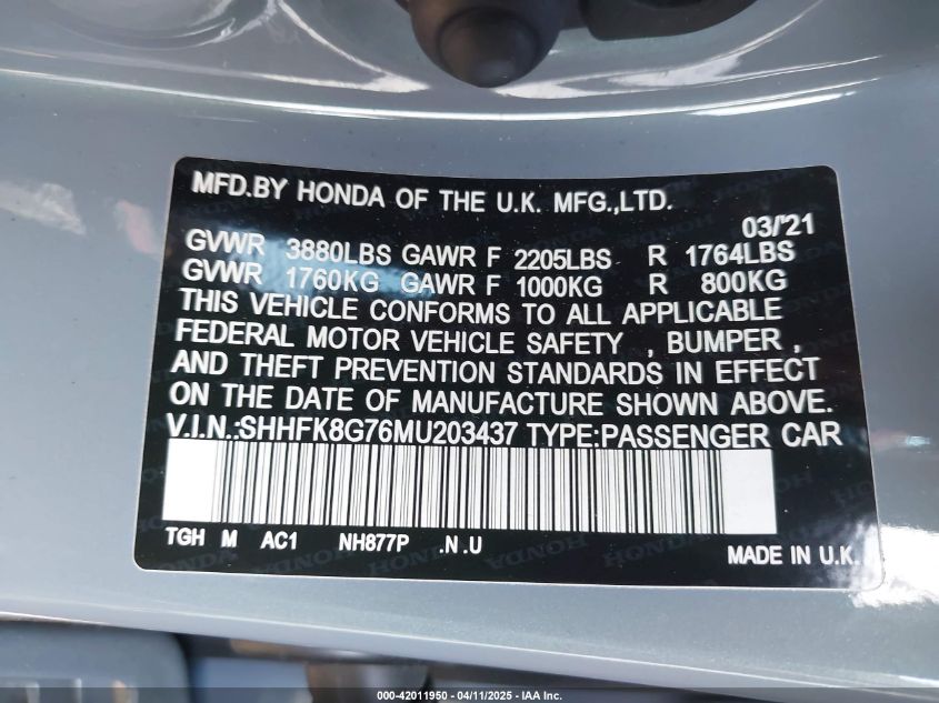2021 HONDA CIVIC TYPE R | SHHFK8G76MU203437