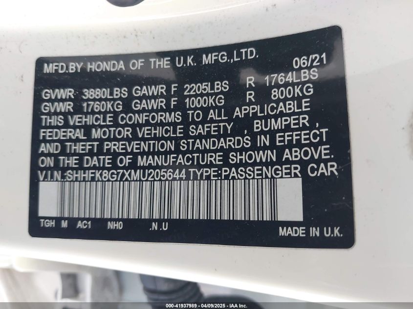 2021 HONDA CIVIC TYPE R | SHHFK8G7XMU205644