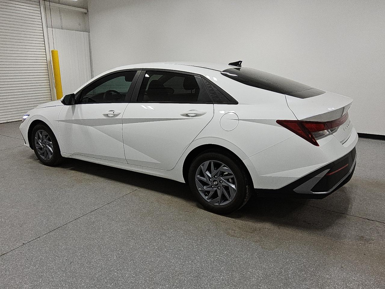 The Hyundai Elantra is a compact four-door sedan with a dramatic fastback profile and angular surface treatment. Its low roofline, aggressive proportions, and extended wheelbase give it a more coupe-like silhouette, breaking away from the conservative sedan mold. Characterized by sharp creases, triangular body panels, and a prominent parametric grille, the design projects boldness and technical sophistication. The rear adopts a distinctive H-shaped taillight layout stretching across the trunk, a ducktail-style lip, and a wide stance that enhances its sporty attitude. Despite the sleek roofline, the elongated proportions ensure solid rear-seat headroom and class-leading interior space, making it practical as well as stylish.