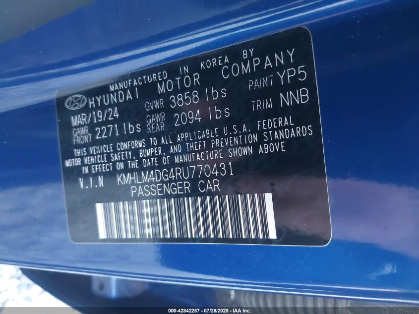 2024 HYUNDAI ELANTRA | KMHLM4DG4RU770431