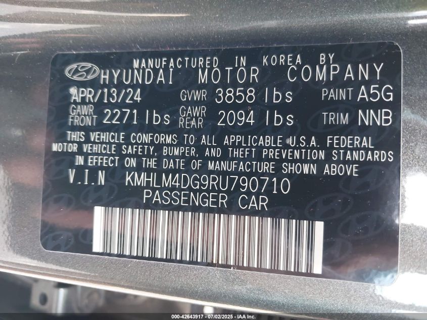 2024 HYUNDAI ELANTRA | KMHLM4DG9RU790710