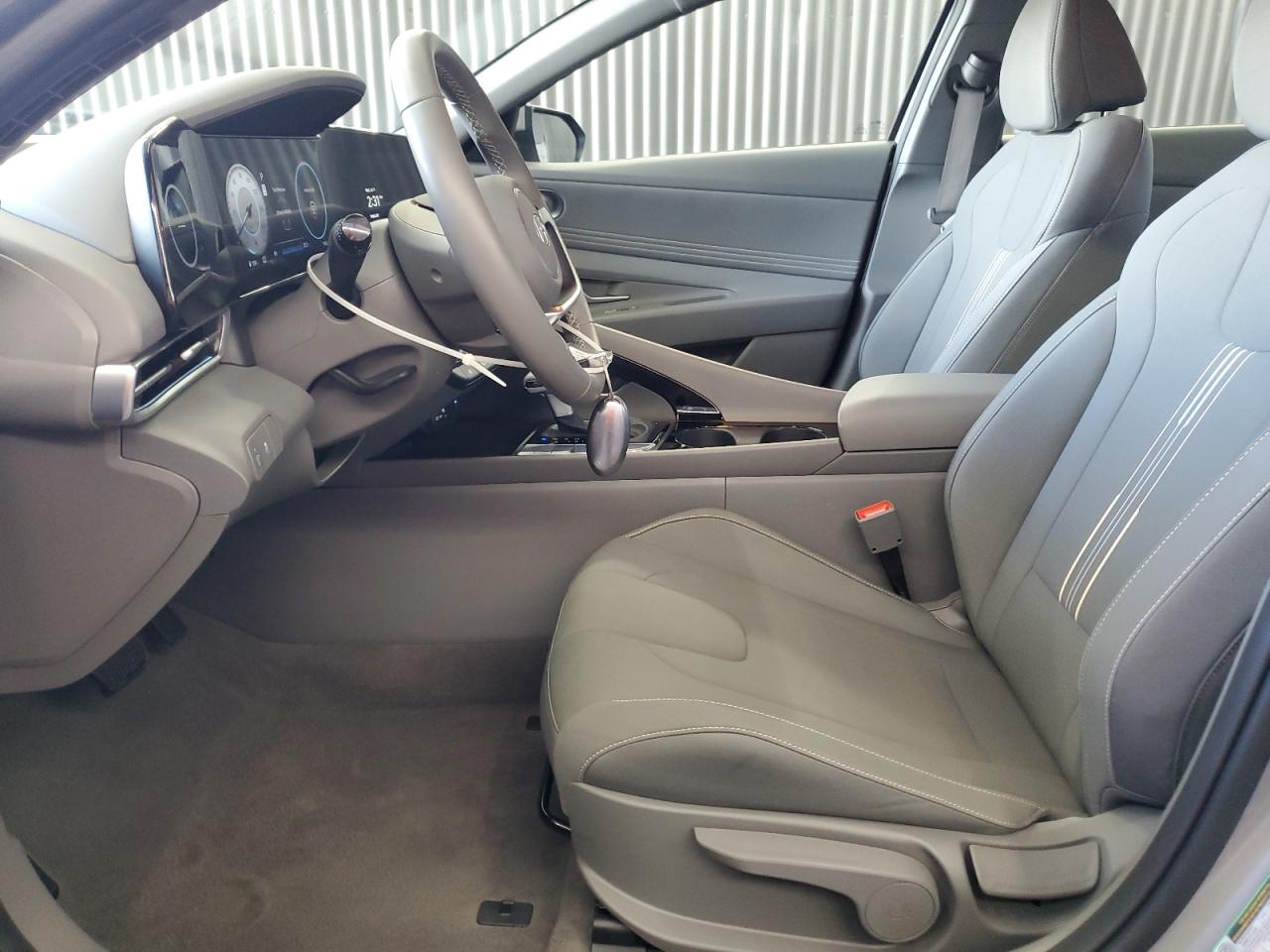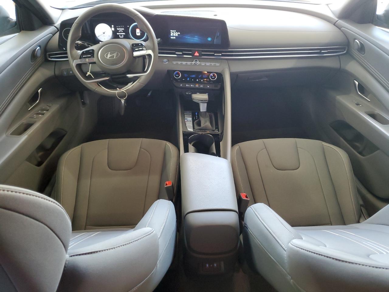 Inside, base trims offer woven or soft cloth upholstery in black or gray tones. Mid and upper trims introduce premium synthetic leather, two-tone interiors, and stitched accents. The Elantra N features aggressive sport bucket seats with integrated headrests, illuminated logos, and suede-like inserts for lateral grip. Cabin design emphasizes a “driver cocoon” layout with a wraparound dashboard, dual digital displays (10.25-inch each on higher trims), ambient lighting, and aircraft-style ventilation controls. Red accents and metal pedals differentiate the N trims, while Limited models focus on sophistication with silver trim and optional dark teal interior themes.