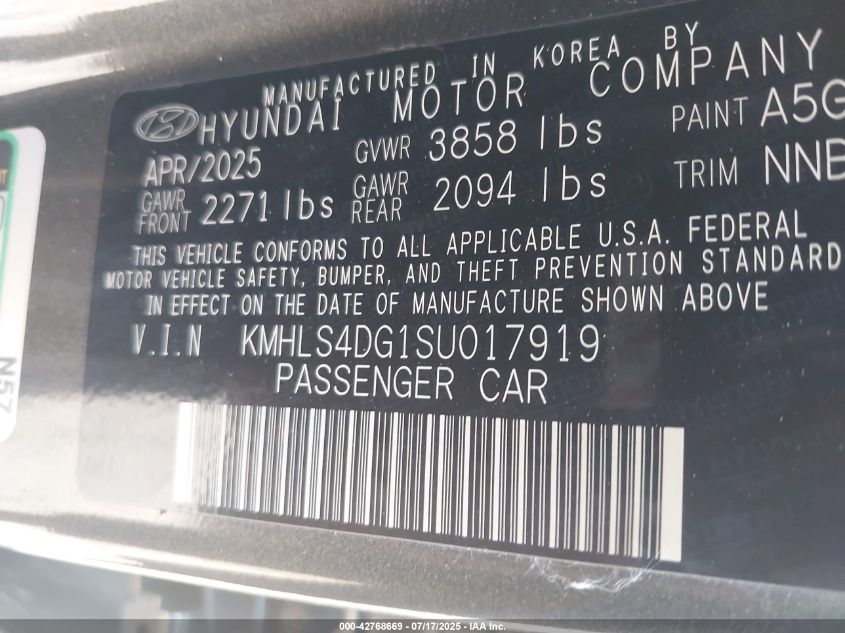 2025 HYUNDAI ELANTRA | KMHLS4DG1SU017919