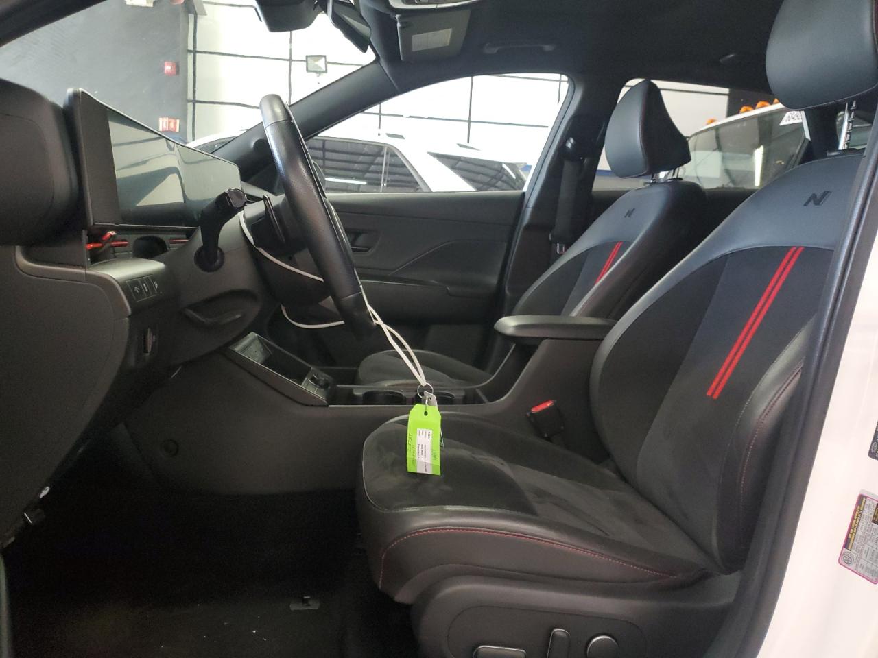 Inside, the Kona features a completely redesigned cabin with dual 12.3-inch panoramic displays, ambient lighting, and minimalist switchgear. N Line variants introduce unique upholstery in black with red contrast stitching, a sport steering wheel, metal-look pedals, and black headliners to evoke a performance-oriented atmosphere. Surfaces feature a mix of soft-touch plastics, gloss-black trim, and textured inlays that reinforce a modern, tech-forward design language. Interior colors for non-sport trims include Sage Green, Light Gray, and Navy/Beige dual-tone options, depending on region and equipment level.